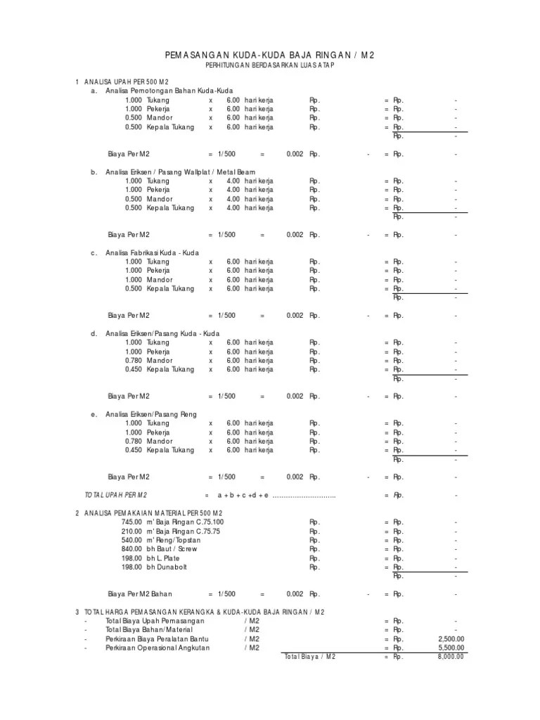 Bahan dasar yang digunakan sebagai penutup atap harus memiliki sifat kedap air sehingga air hujan. Selain itu juga untuk soal harga, harga borongan baja ringan per meter lebih banyak dipilih. Selain itu, harga atap baja ringan juga lebih jika dilihat, harga baja ringan sebanding dengan kualitasnya. Menanyakan langsung kepada kontraktor menjadi hal yang cukup menakutkan bagi pemilik proyek karena sering dinaikan secara sepihak. Panjang penampang kolom, j= 600. Perbandingan rencana anggaran biaya konstruksi baja konvensional dan. Kedua meterial menjadi bagian paling penting dari atap baja ringan. Aluminium & zinc yang memiliki banyak keunggulan. Perhitungan berat besi dalam volume beton. Selain tipis dan mudah dibentuk, baja ringan terbilang lebih. Penggunaan baja ringan pun akhirnya mebgalami kemajuan, terutama dalam segi mutu. Hotline konsultasi arsitek jakarta selatan serta perhitungan baja ringan 0811166641. Rangka atap baja ringan skytruss terbuat dari baja ringan bermutu tinggi dengan komposisi.