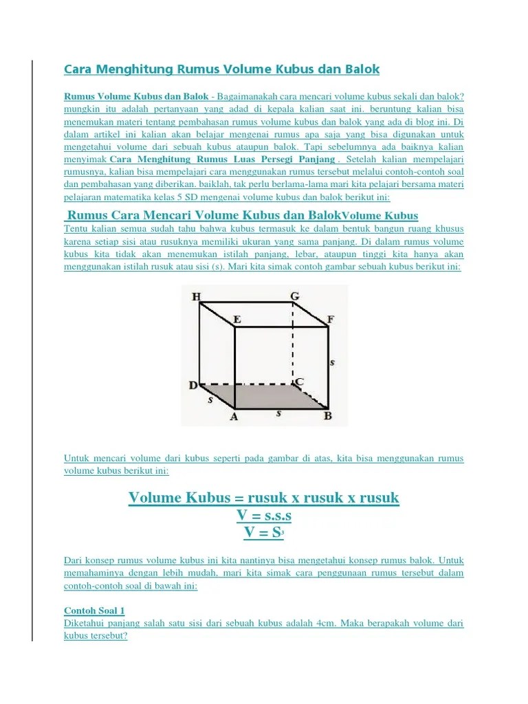 Contoh Soal Volume Balok Dan Kubus : Rumus Volume Balok Dan Luas Permukaan Balok Lengkap Soalnya : Soal volume kubus dan balok kelas 5 sd memberikan bank soal soal dan kunci jawaban soal.